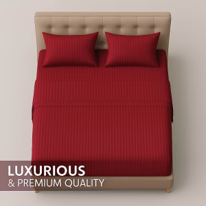 Home Mart Outlet Striped Microfiber Fitted Sheet Set – King 180×200 cm – Dark Red Color – 1 Fitted Sheet & 2 Pillowcases (50×75 cm) – Deep Pocket, Soft, Durable, Wrinkle-Resistant Bedding Set
