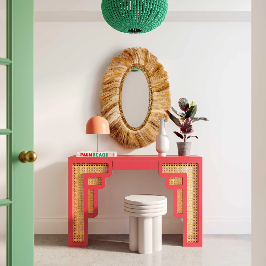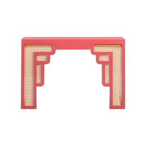 Channeling the charm of Palm Springs and the sleek elegance of Art Moderne, the Palmera Console brings a splash of personality to any space. With its fluid silhouette, radiant pink finish, and handwoven rattan panels, this piece strikes the perfect chord between contemporary fun and retro sophistication. A bold statement-maker, Palmera is where playfulness meets poise.