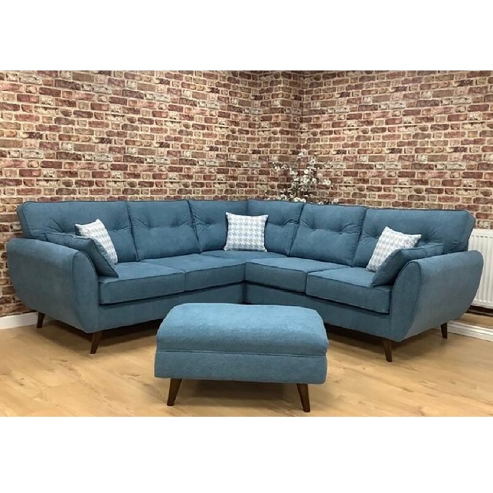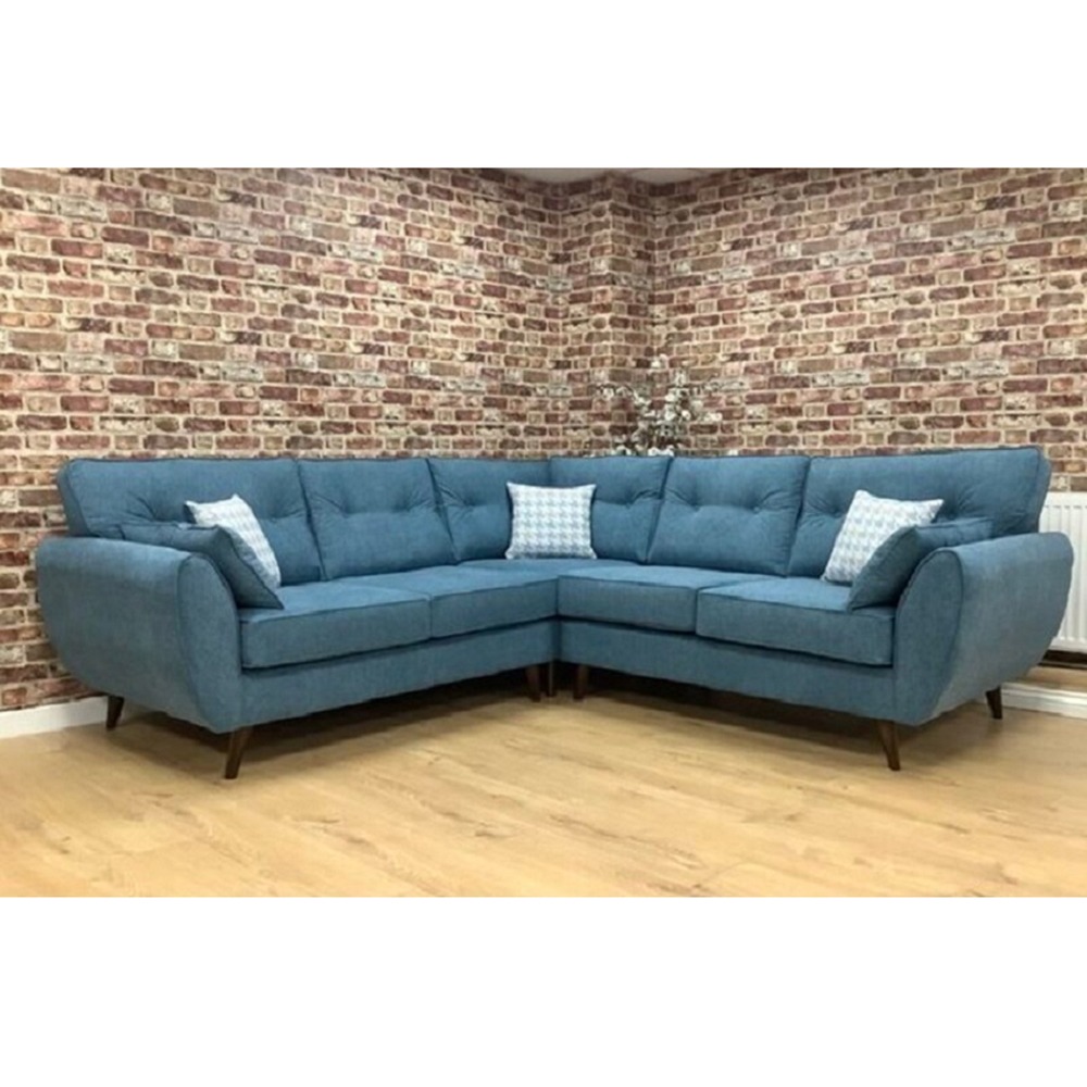 Add a touch of mid-century glamour to the home with this corner sofa, which is as practical and inviting as it is stylish. The sofa is available in a range of colors to suit your existing decor, with an old Hollywood design featuring button detailing, velvet feel upholstery, wooden legs, and included toss pillows.