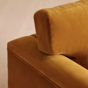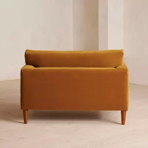 Reya loveseat invites you to sink into its comforting, cushioned profile with only relaxation in mind. The mid-century design takes inspiration from similar interiors seen throughout Home Mart Italian with rich velvet upholstery and cushioned armrests. Turned walnut legs lift this sofa off the floor to create the illusion of more space. Pair with our Reya ottoman for a cozy corner set-up.