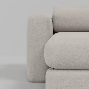 With two arms of varying heights, this piece exudes sophistication and exclusivity. This opulent piece boasts a unique open bottom design, adding both style and functionality to any space. Upholstered in trendy greige soft boucle, this chaise lounge is not only stylish but also incredibly comfortable.
