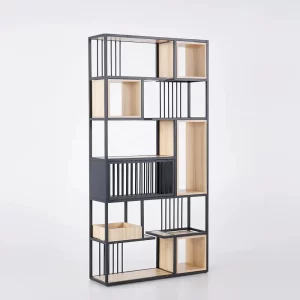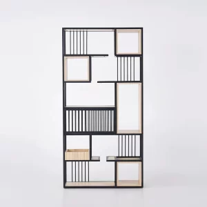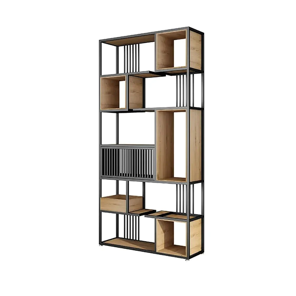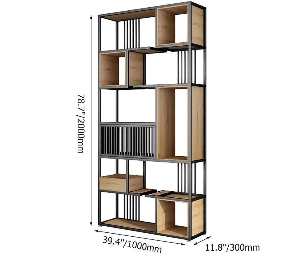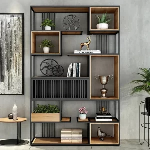 Making use of a metal frame and MDF board The double-wide 6-tier bookshelf is ideal for storing and displaying books, pictures, souvenirs, and other mementos. This geometric bookshelf is ideal if you want a rustic industrial bookshelf that will go in with the architecture of your home. This shelf provides a useful purpose in addition to being visually beautiful