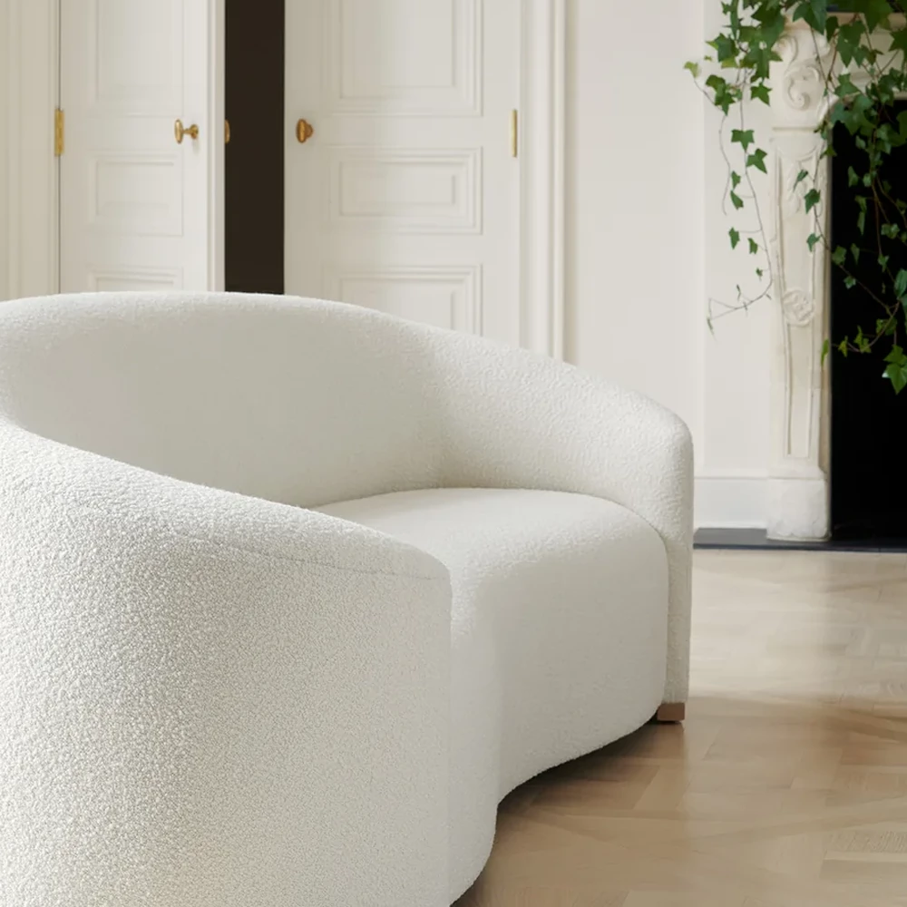 The Chelsea SofaWith fluid lines and sensual curves, The Chelsea Sofa pays tribute to the softer side of mid-century design. The U-shaped silhouette and wraparound arms subtly embrace, while a tightly upholstered seat and back lend polish. Sculptural Legs : Curved, solid wood legs echo the fluid lines of the sofa back and seat. Tailored Design  : Tight upholstery and a waterfall seat enhance the design’s tailored refinement. |