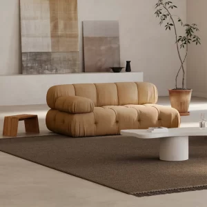 Design a serene focal point with this beige modular sofa, offering flexible seating and a touch of refined style. Soft upholstery and clean lines deliver a polished look, while layered cushions and neutral tones introduce depth and comfort. A modern floor lamp enhances the ambiance, and a textured rug anchors the space with cozy sophistication. This layout suits open-concept living areas, blending timeless elegance with practical versatility for those who embrace understated luxury.