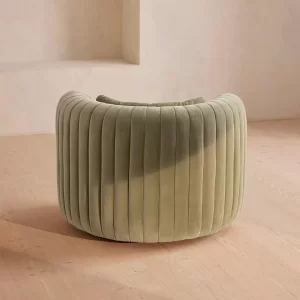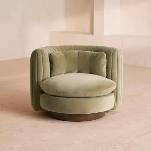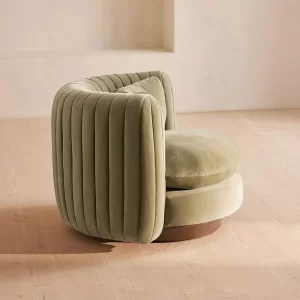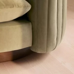 Shaped for optimal comfort and visual impact , Inviting you to relax and sink into its undulating curves, it’s upholstered in rich velvet with a swivel base and brass detail. Use to recreate our cozy reading nook in your own home.