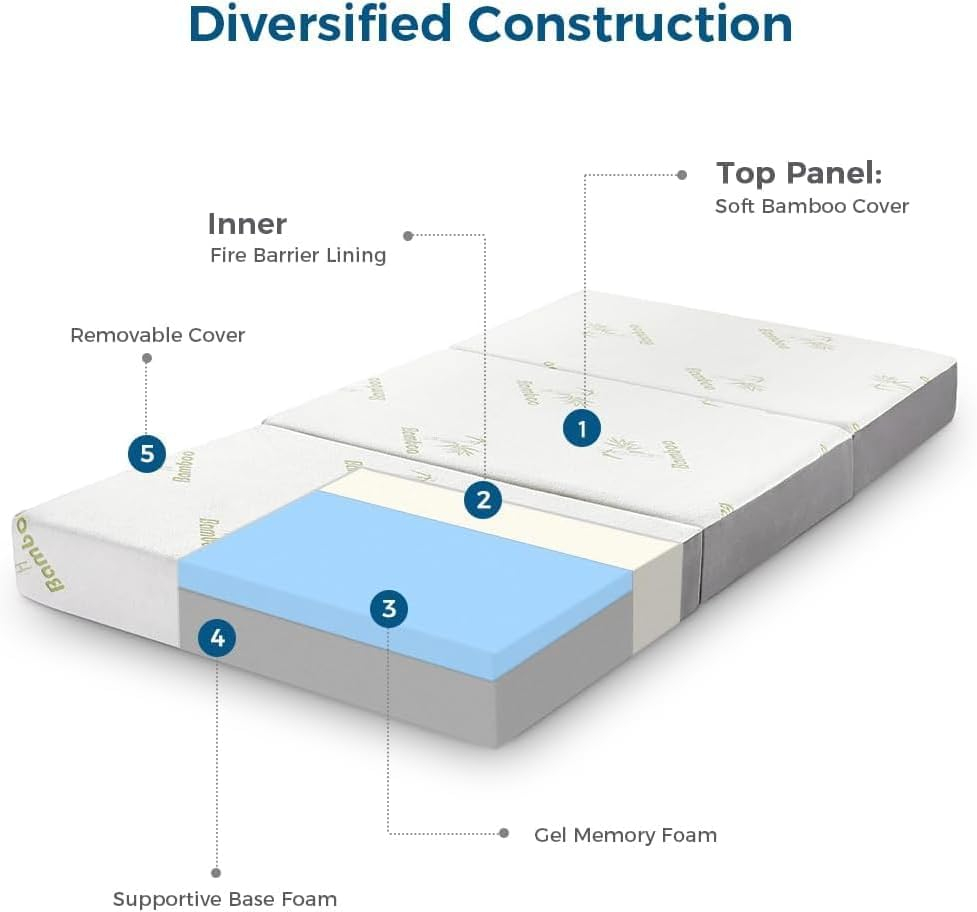- Comfort layers: Responsive memory foam surface over supportive base foam.