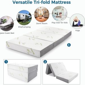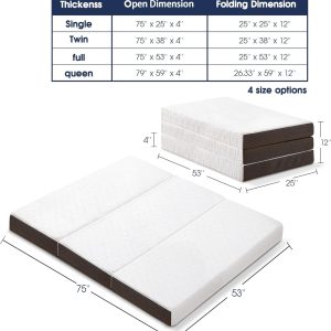 • 🛏️ Compact Tri-Fold Design: 🔄 Folds into three sections for easy storage and portability. 🏠 Perfect for small spaces like apartments, dorms, or for travel use. When folded, it takes up minimal space, making it great for quick setup and storage.